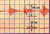 After passing through the holes, the noise then strikes a nitrogen charged rubber tube or bladder. This tube is usually charged with nitrogen at 70% to 80% of the hydraulic operating pressure. The 1/32 inch diameter holes are so small that the bladder cannot extrude into them. The bladder deflects each time it is hit by a pulsation, and this slight deflection of the bladder reduces both shock and noise. The large bladder area and the short travel distance combine to absorb high frequency pulsations over 600 Hz.