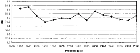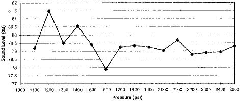 Low Idle with Sound Suppressor Sound Level (dB) vs. Pressure (psi)