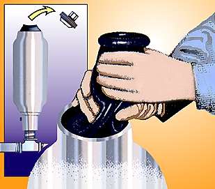 This illustration shows the compressed pleated bladder for the NACOL accumulator. The bladder compresses star shaped, never worn by the friction of rubbing against the shell. The bladder lasts longer, therefore